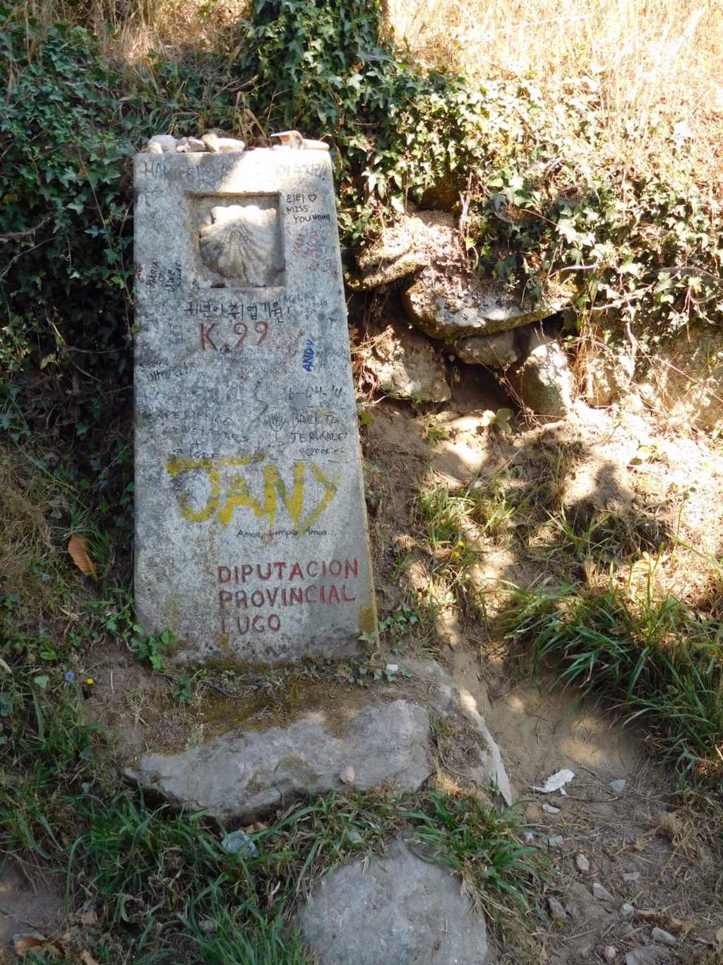 Wonderful views and a lot more traffic on the trail. I saw more people in the first 15 minutes than I did the entire day earlier in the trip. The Camino dropped to double digits today I snapped a photo of the 99k trail marker!