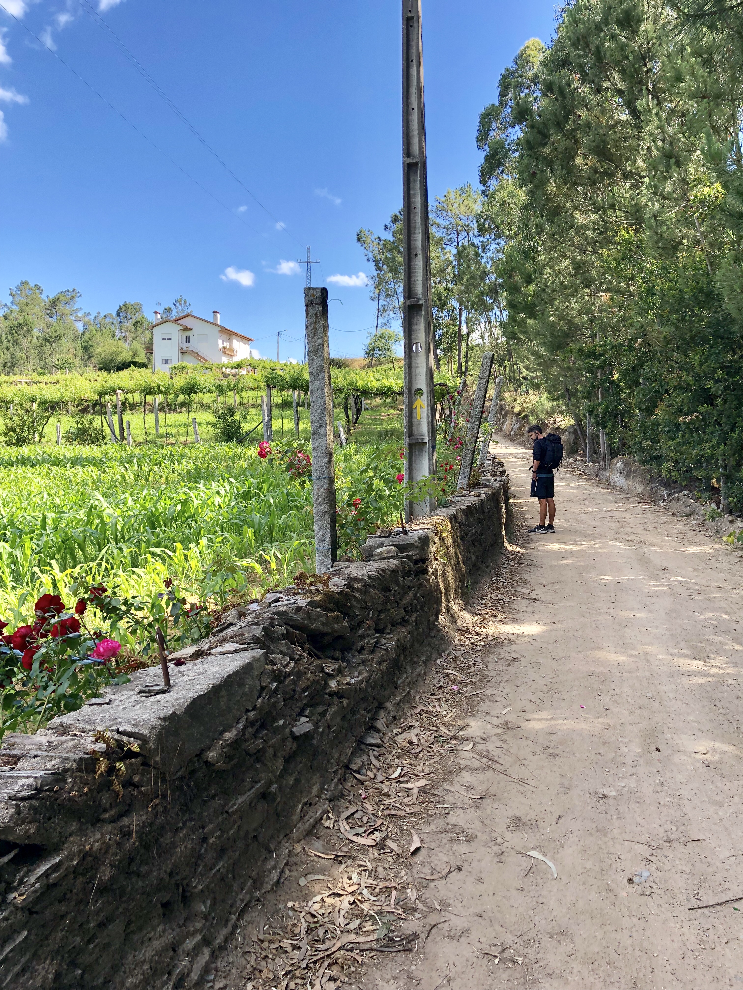 The taxi of shame is losing its sting. I have to stop to remind myself this is a vacation and it’s great to find balance between tourist and Pilgrim. The pavement and cobblestones are giving way to larger sections of natural path surrounded by corn and hay. We spent a lot of miles winding through walled village streets built to keep pilgrims on the way. The trail is well blazed and easy to follow. Unfortunately the Camino Central does not have the public water fountains that were commonplace on the Camino Francis. Food for the day was simple. Hard boiled eggs, baguette with ham, cheese and tomato, espresso and water. Fresh cherries at a Supermarcato were a treat. We reunited with Dan & Eunice and walked the remaining miles into town that day crossing over a beautiful bridge, got our stamp at a Cathedral and checked into our Albergue. Waiting until 7pm for dinner was a challenge so we passed the time with beer & snacks.