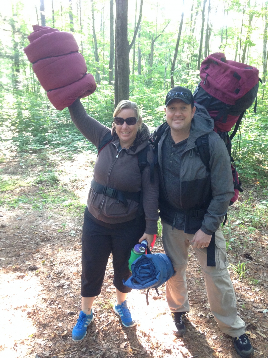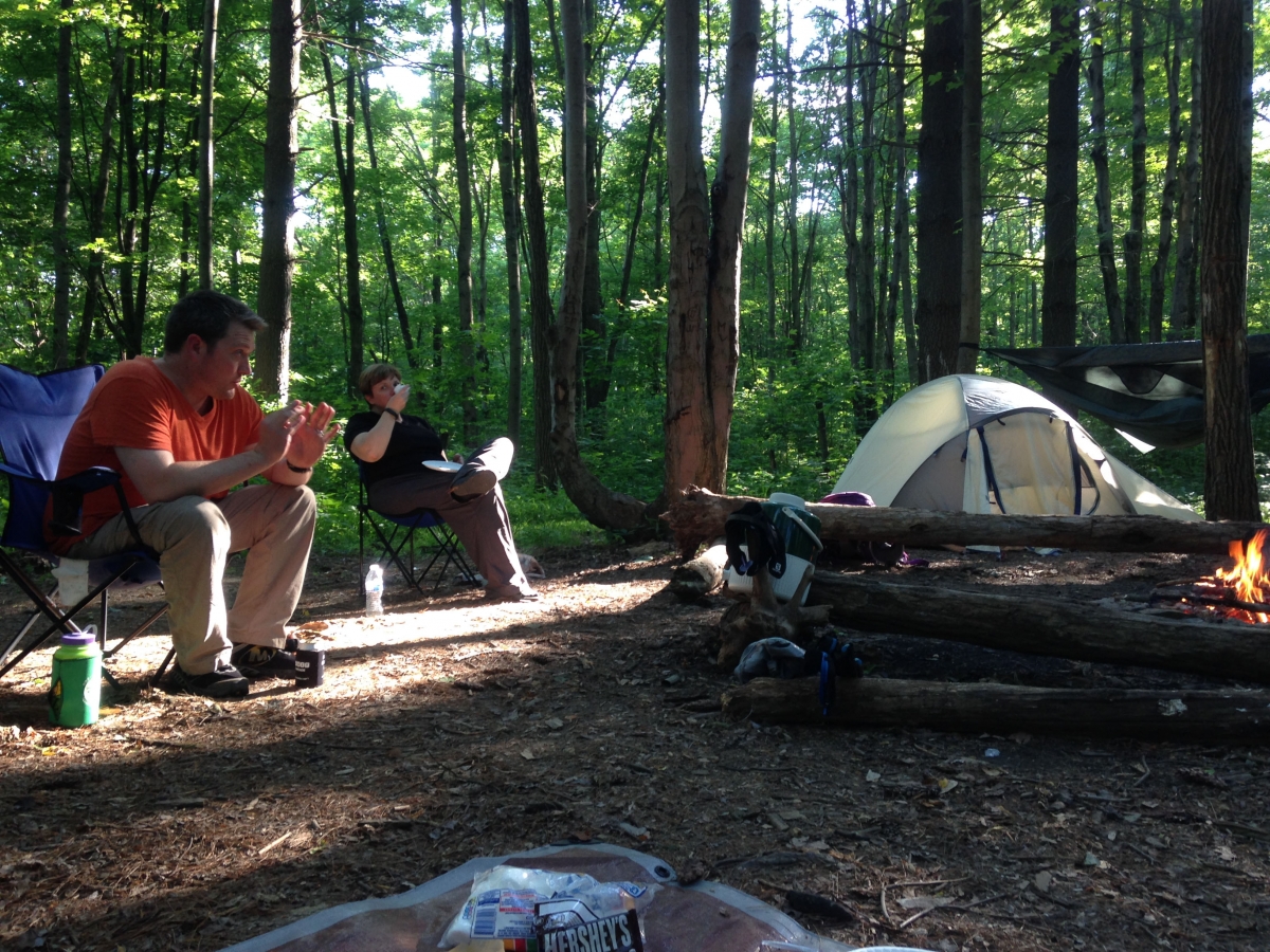 Camino training continues. I think this will be my last long walk before I leave. What a great hike! Eunice and I walked 13.9 miles on Saturday keeping an average pace of about 2 miles per hour. We cached water where the trail crossed route 16 but didn’t really need it. I always feel better over-prepared. Mark, Mona, and Jen were on Sherpa detail and secured a great campsite a quarter mile south of old school house. Mark made a fantastic flank steak cooked direct on embers. A quick hike out to the trail head was great way to stretch the legs on Sunday!
