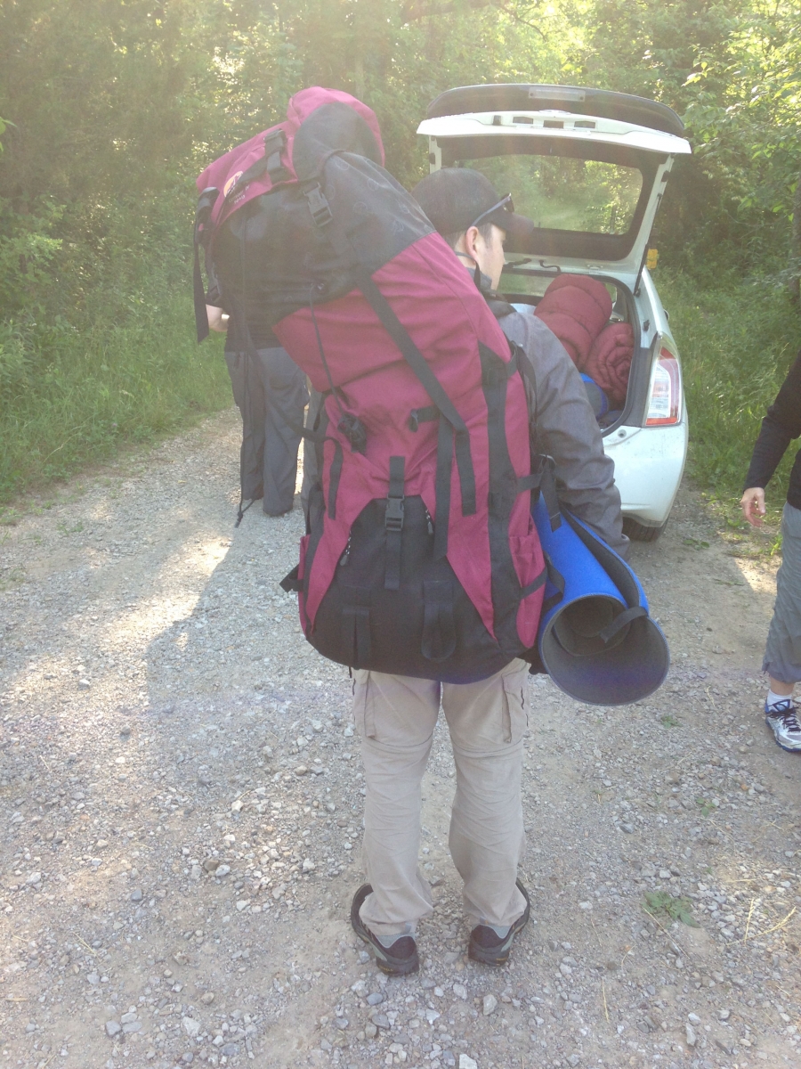 Even with a torn hamstring Mona makes it happen! Full disclosure for Mona’s Physical Therapist: Mona was only transporting a couple puffy sleeping bags in the pack.
