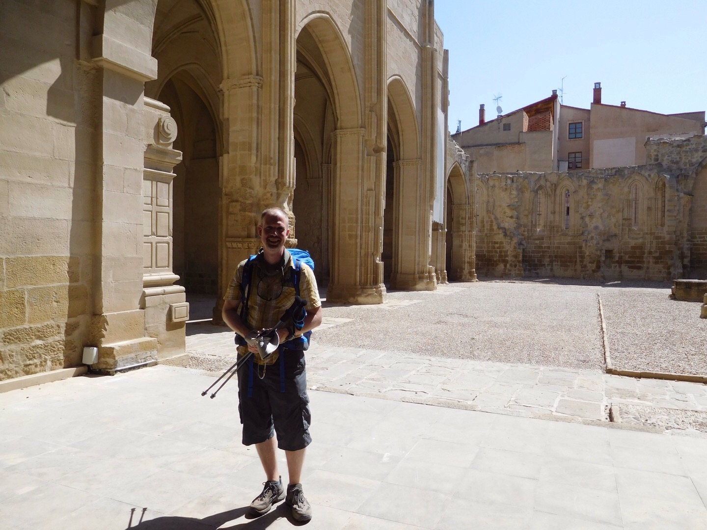 Another great day, pumped up to 19 miles. Temp was in the high 80s, not much shade, but there was a nice breeze every once in a while. I was on the trail at 5:45 and enjoyed the morning cool. I Drank every chance I got, easily 5L. Talked with several pilgrims, lots of great folks. More rolling hills, less wheat, more grapes, pine and a desert smell that made me think of Sedona. Almost stepped on a small snake on the trail, got a photo from a safe distance. Visited the cathedral in Viana and had some tapas for lunch. It was hard to navigate Logrono, the streets were not well marked. The people however were very kind and gladly pointed the way. Ended up at a chain hotel with bath tub. I’m gong to soak my feet for a hour!