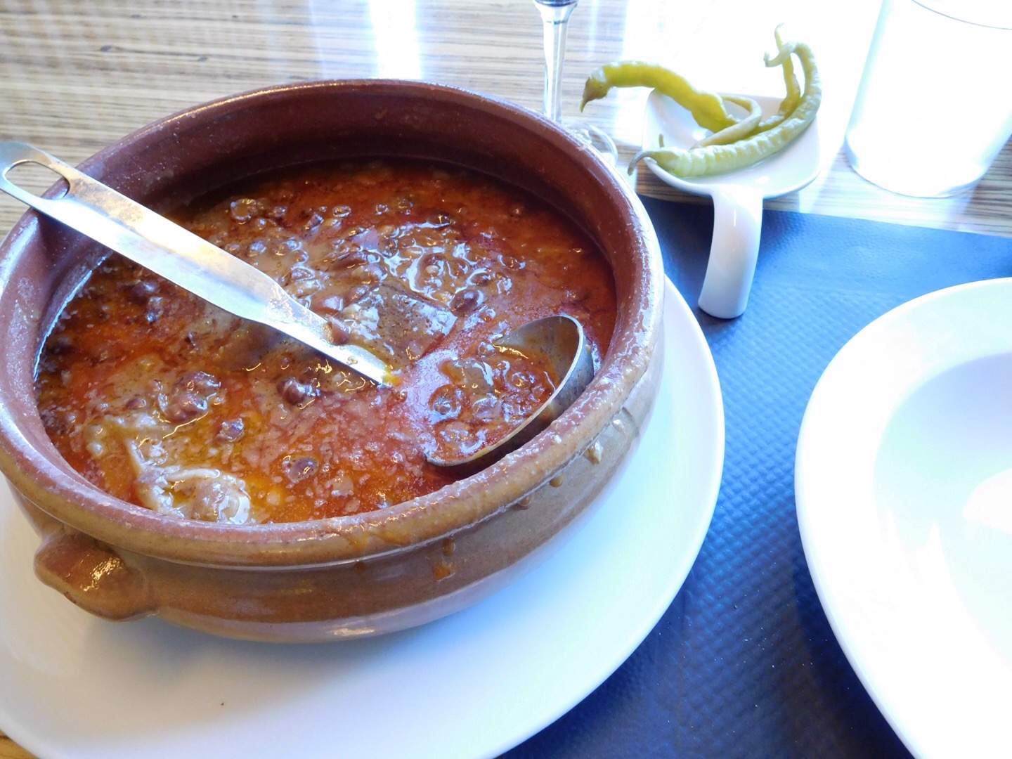 Pilgrim meal 1st course, for one person! Amazing red bean stew. I could only eat a third!