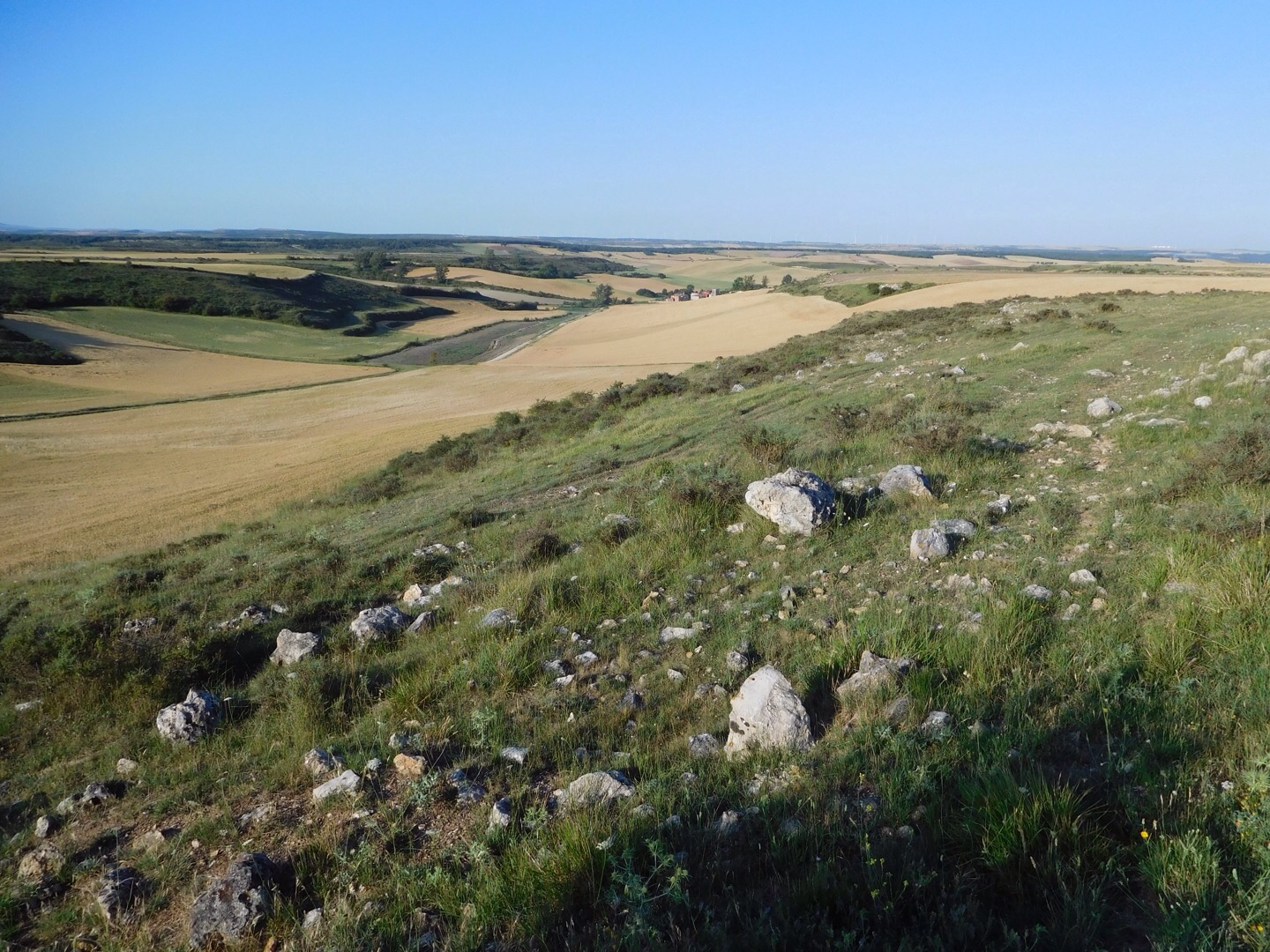 Usual 5:00 wake up and quick prep for the day. The village quickly exited to a long stretch of dense forest. It’s still dark at 5:45, but a tree canopy over a rocky trail, that’s a whole different kind of dark. My headlamp is about the size of a matchbox and is perfect for navigating a dark stairwell or finding the bathroom in an albergue. On this trial it was seriously outgunned. I was standing on the road looking into the pitch black mouth of this forest, with a little yellow arrow pointing in. The camino really does seem to give you what you need, and i turned around to see a couple of seriously bright bobbing headlamps from approaching pilgrims. If I could keep up with the group I could make it through the forest. Elsa from Finland was packing some serious lumens and slowed her pace to help me out. It was really awesome, it felt more like a leafy cave than a forest. This is her third camino and we exchanged typical pilgrim banter. It was about 20 minutes through the woods and I thanked Elsa for sharing her light. She continued with a faster pace and I slowed down to take a picture. With open sky the morning was taking shape. It was incredible. A full moon was setting over village in front of me. The sun was rising behind me illuminating low thin clouds. Incredible. The pictures don’t do it justice! High on nature, I made my big mistake of the day. There was a little line at the coffee shop in the first village of the day, so I skipped it. I left SJdO rested but without much breakfast (two bananas and trail mix) I have to keep more provisions in my pack for these situations. Dinner the night before was tuna on tomato with lettuce and olives, a heavy meal felt like way to much after the heat of the day. The result was that about 9:30 I hit the wall… hard…. It was on the only hill of the day, an easy one by camino standards. I was out of gas. It seems like everything on the camino happens for a reason. I suppose life in general is that way, I’m just not tuned in. Crawling up this seemingly endless hill. I realized that pride was the real issue. I was pushing to get to Burgos to rent a bike so I might me able to cover every mile of the camino. I was telling myself that “I didn’t want to miss a single step”. In reality it’s probably more ” wanted bragging rights for getting all 500 miles”. As I zoomed out on the situation I realized that I probably avoided a train wreck. I’ll have to cover some ground by bus, but I’m just fine with that. Every step got easier after that point. It also got much better after I found a coffee shop and had a cafe con leche, tortilla and blood sausage with quail egg. Btw the blood sausage has a creepy name, but it’s delicious. I also had a chocolate croissant ….and another tortilla. Hobbled away from the cafe feeling like a new man. Opted for the river route to Burgos. Very scenic, but ran the total for the day up to about 18 miles. Said goodbye to Bob and Nancy who I’ve seen on and off for the past few days. Opted for rather opulent diggs in a two star with an incredible view of the cathedral. I booked two nights. Tomorrow I’m a tourist, not a pilgrim. It’s been 13 days and almost 200 miles. I need a break. I’m meeting friends for dinner. Body sore, spirits high!