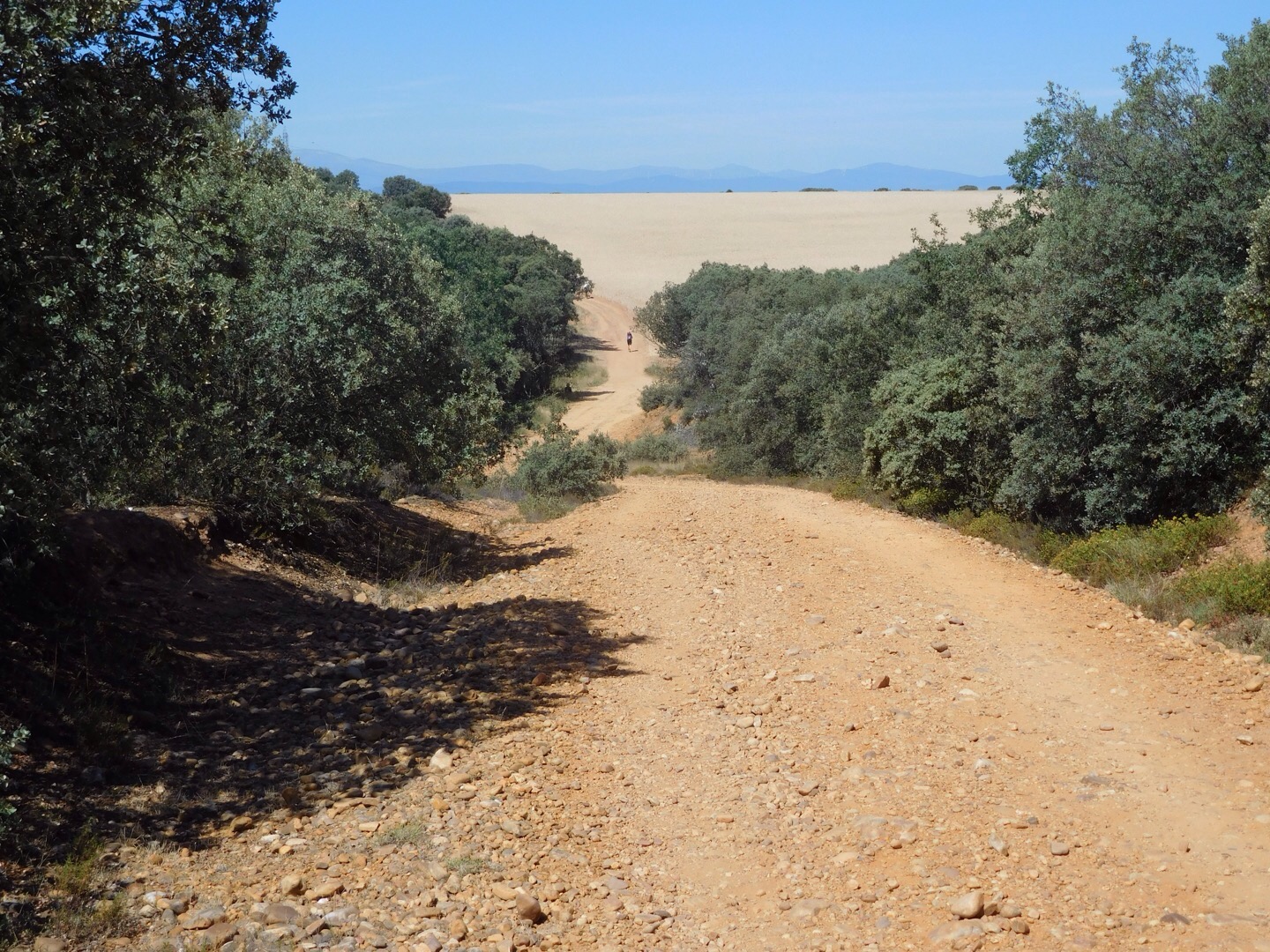 19.6 miles today. In the mid 90s by mid morning. It was a tough and beautiful hike. I love the aromatic burning smell in the desert. Feet a little mushy from lots of pavement and larger stone trails. Quads and calves also tight. Found a very nice one star hotel for €25. Very clean, shower very hot, bed comfortable. It also has a nice balcony. Huge plata de dia, chic pea and ham. Ibuprofen, tiger balm, a gallon of water. Bed way early. Next few days are going to be tough. Looking forward to Cruz Fero, highest point in the camino. Life is great, it’s just really challenging at times!