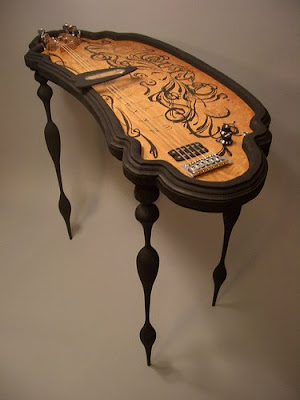Lapsteel guitars are cool low-fi rockstar stuff, combined with the cool Ouija graphics I think it has the potential to be a great furniture guitar cool item. Here’s an image found online that will serve as inspiration: