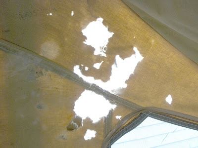 I just finished dying replacement canvas in an attempt to match the existing brown / mustard color. Detail pics to follow.
