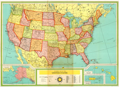 I have several poster sized prints that I had scanned earlier this week, one was a 1960s map of the US that i found at a flea market. I like the colors and the general patina of a 50 year old document. Bizarre coincidence, I was watching Silence of the Lambs on Netflix and what does Jody Foster creep by before the lights go out in Buffalo Bills basement? THE EXACT SAME MAP!