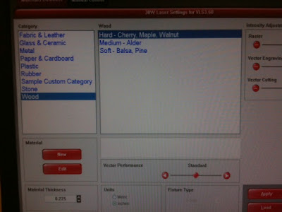After tweaking settings I found .19″ hardwood to work well with the lace wood.