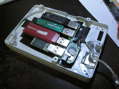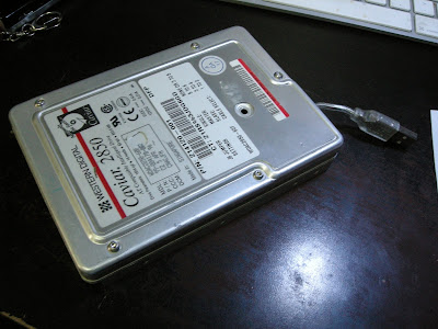 Great weekend project I found on the instructables website. Take an old HDD, a USB hub, and a few thumb drives. Remove the HDD guts and replace with the critical parts of the USB hub. I used a dremel tool to chop the strain relief from the hub housing and hot melt glued it in place.
