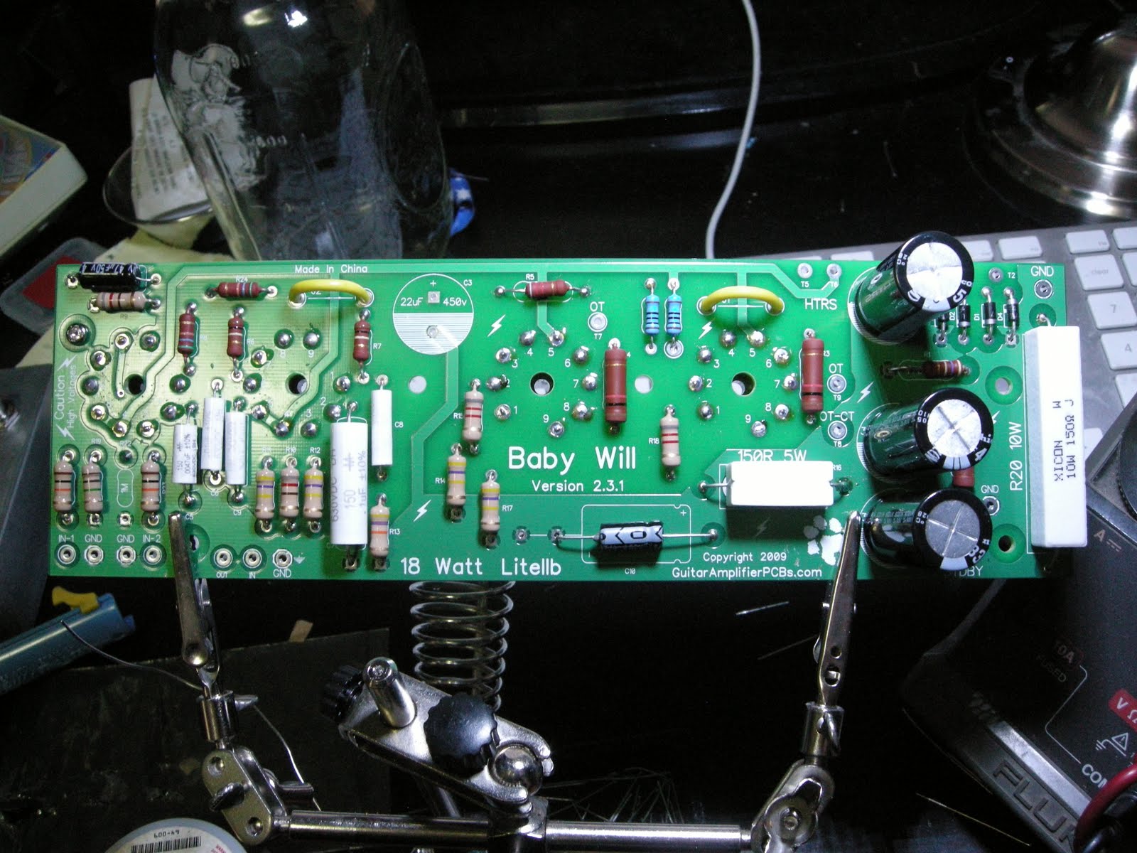 project Baby Will February 27, 2011 mrfitzer Leave a comment Researching the 18 watt marshal Bluesbreaker Jr. Design I found the Baby Will Epiphone Valve Junior mod board and couldn’t resist. It shipped as a blank 1/8″ tank like PCB. Here’s the PCB with most of the components placed.