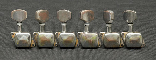 A few note on process: After re-etching I did a short rust bath (about 2 hrs) I ended buffing most of that effect off with the exception of the tuner covers, I liked the green cast they picked up. I rubbed black shoe polish into the chrome, it caught in the corners and pitted areas and added a slight layer of grime. Before I reassembly I hit the parts with a layer of clear coat.